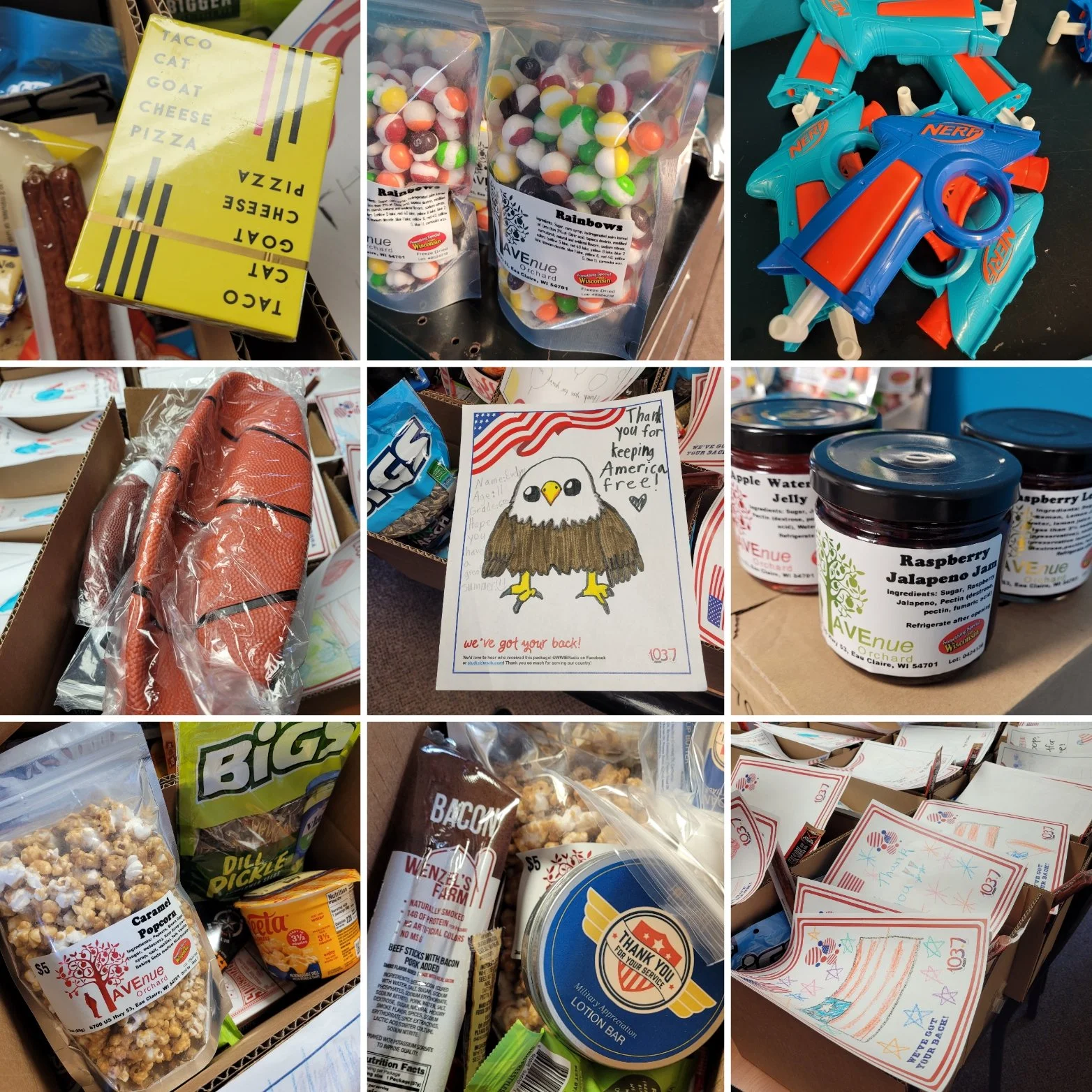In 2024: several thousand dollars worth of care package items sent out to members of our Wisconsin Army National Guard, including many locally-made products from right here in their home state!